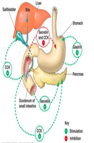 What is the function of hormones like Gastrin, CCK, and Secretin in the digestive system?